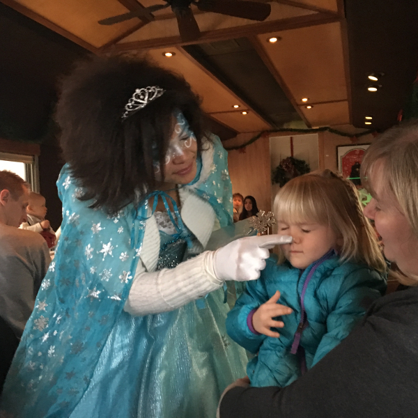 Getting my face painted like Rudolph the Red-nosed Reindeer.