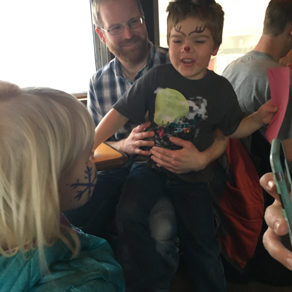 Waiting for Santa. (I had Daddy take my face paint off.)