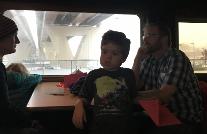 The Holiday Train came to town, so Daddy and I went to see it. Mommy said it was too cold. She may have been right, since Daddy's phone agreed and stopped working before he was done taking pictures. We saw Lilei and Oliver and their mommies at the train. And we got to stand right next to the music - well, Daddy did. I was sitting on his shoulders.
