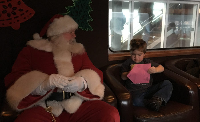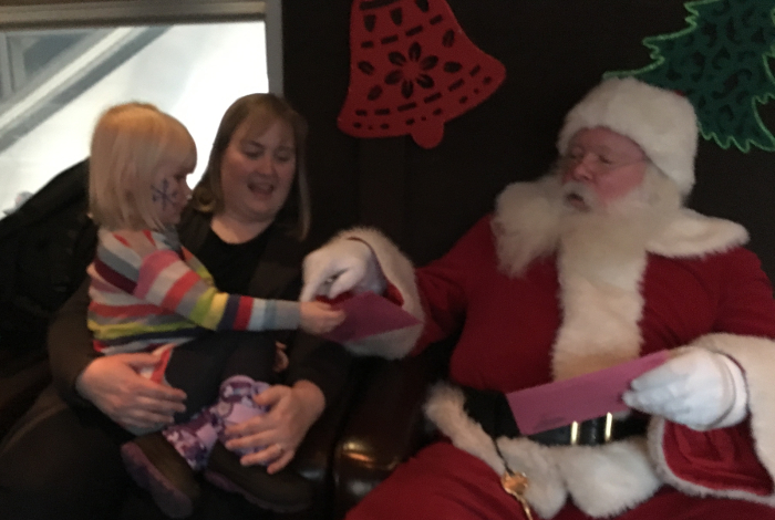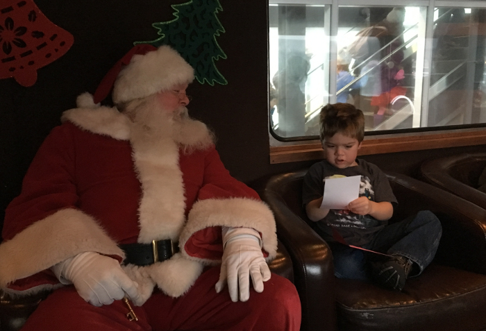 Santa Claus was going to come on the train to talk to us, so I wrote him another letter. I wanted to ask Santa to give Donald the Golden Eagle a new wing, to fix the one that broke when he got hit by a car, so he can fly with the other eagles again. Daddy helped me get all that on the little piece of paper.
