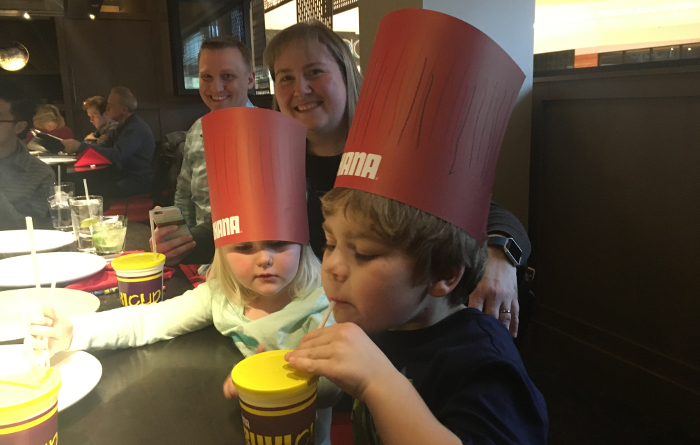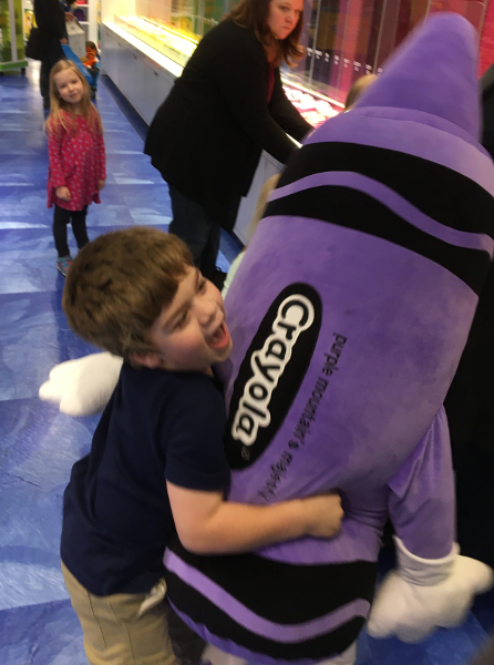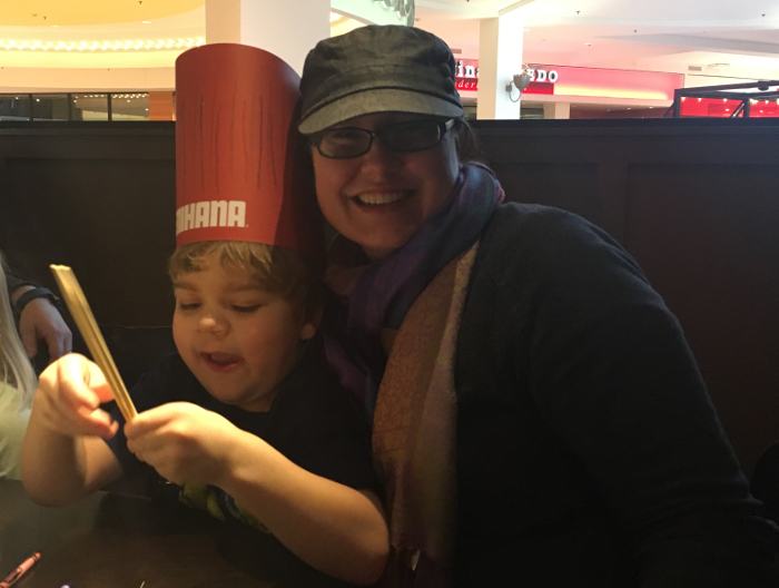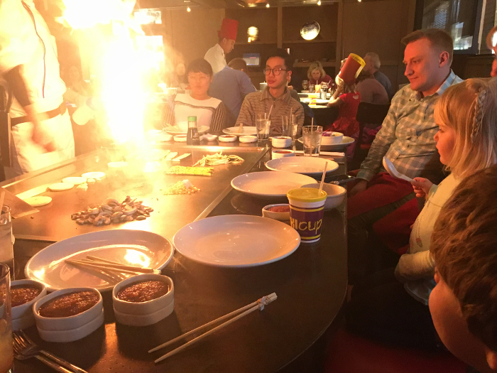 On Thursday we celebrated to remember Grandpa Joe. Mommy and Daddy came to get me and we went to meet Auntie Kara and Freya at the crayon store while we waited for Uncle Josh to be done with work. Then we went to a fancy restaurant where they make the food right at the table - because Grandpa Joe liked that sort of thing. It was a lot of fun. I even ate with chopsticks! My favorite part was when the chef used an onion to make a volcano - and then it erupted flames!