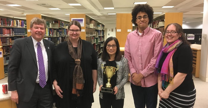Mommy with the university president on the left, her professor in the middle, and Adam in the pink shirt.