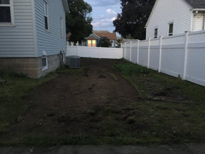 On Friday Dad rented a sod cutter and removed most of the grass in our backyard. We didn't get a before shot or any action shots. I spent the night at Angie and Sawyer's, and I even slept in until almost 7:00 AM.