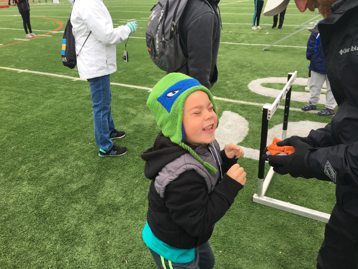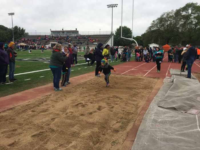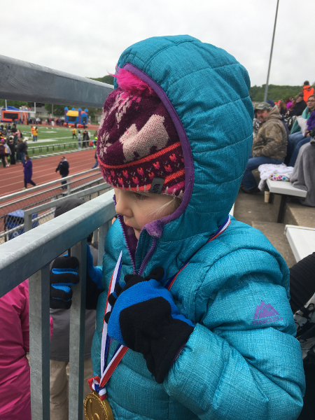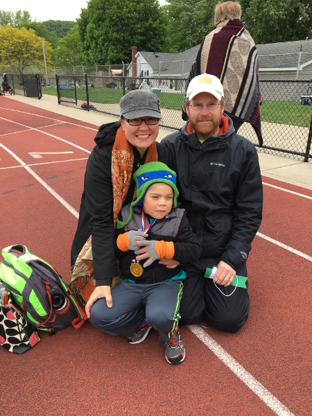 This week I had some new kinds of fun. Friday was a special track meet for all of the little schools in the area. I was a competitor in the softball throw, the running long jump, the ball kick, and the 50-meter dash. I fell during my race, but I got back up and finished. I saw a lot of my friends there, including Brandon, my swimming teacher, and Kelly from when I first started school at the children's center. Auntie Kara and Freya came down to cheer me on with Mom and Dad. And after it was over we went out for pizza!