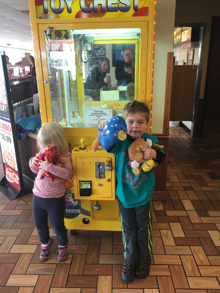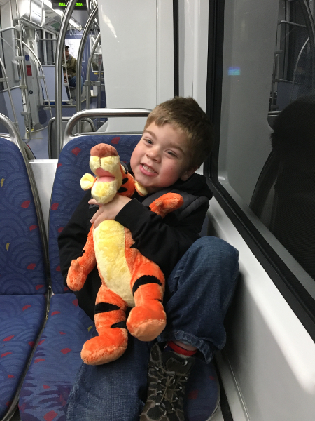 Josh dropped me and Daddy off at the mall, and we spent some time looking around, having lunch and ice cream, and buying a Tigger toy. We also got a book about the Cars movies and two about PJ Masks. Then we rode the light rail to the station closest to Freya's house and walked from there. It was a lot of fun.