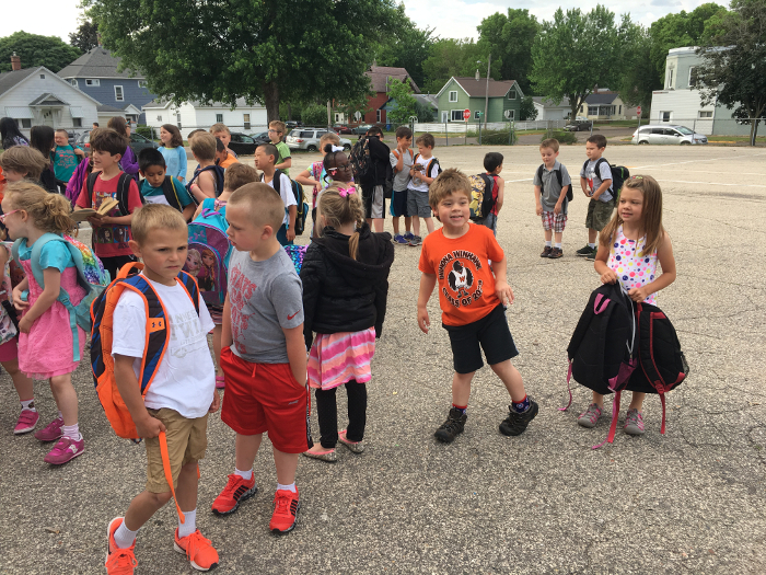 Waiting with my class for the bell to ring.