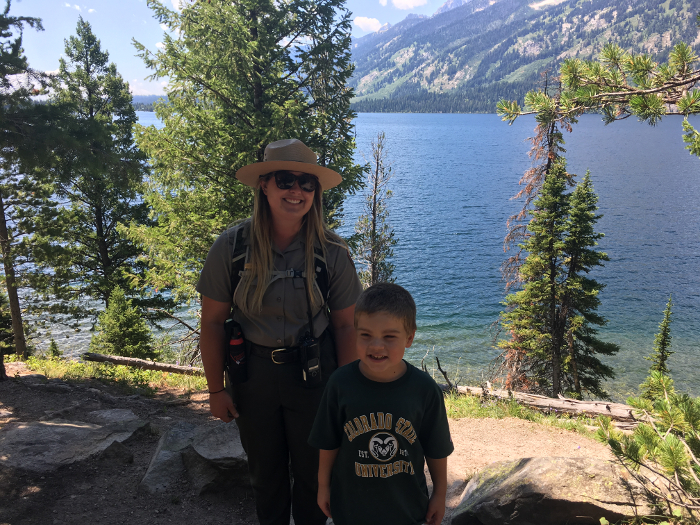 Keeping the ranger distracted while Daddy was off the trail taking pictures.