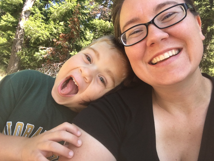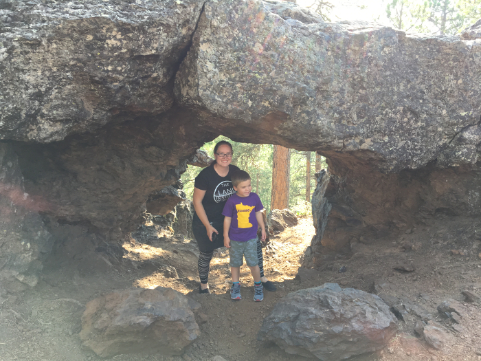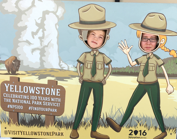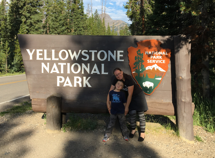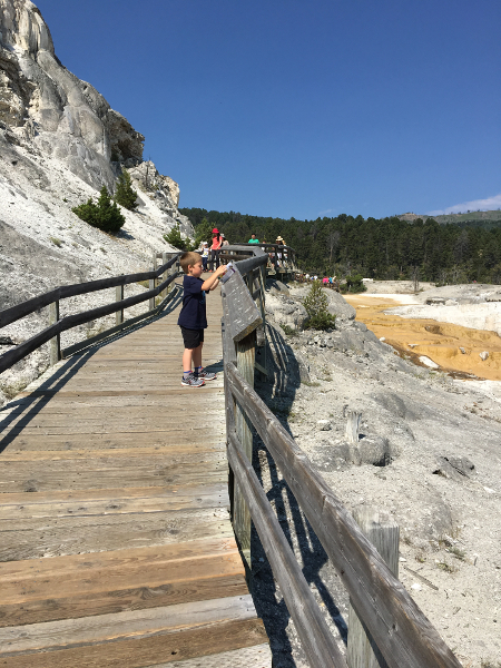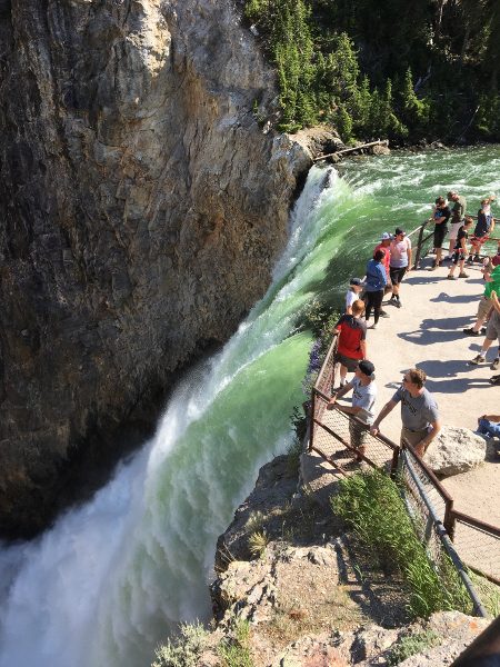 We stayed in Cooke City in a little cabin for the night, and then went back into the park. We saw some things, but there were so many people we couldn't find places to park at many of the waterfalls and geysers we passed, which was disappointing. So we saw some lesser visited parts of the park. And we did get lucky in a few places, like the canyon and the big waterfall. Daddy and I walked down - it was a little scary because there wasn't much to keep you on the hillside. We got back early to the cabin because we all needed a rest.