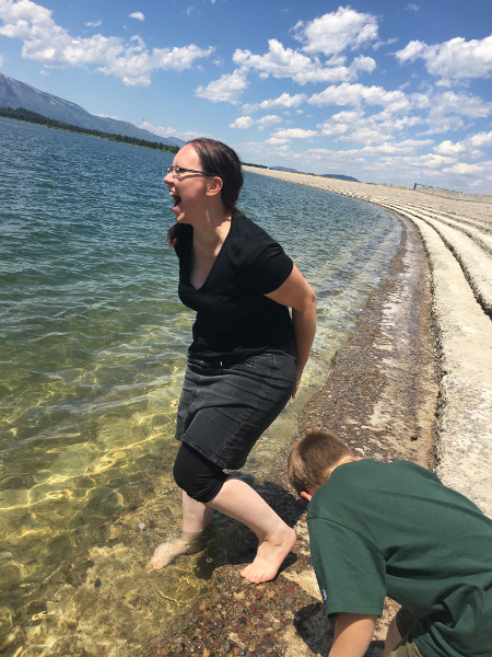 Tuesday morning we got up and headed to Grand Teton National Park. We spent some time at the visitor's center, Jenny Lake, the Jackson Lake dam, and somewhere by Colter Bay we saw a black bear. Daddy got a picture of it, but it was from too far away to look like much. You had to be there.