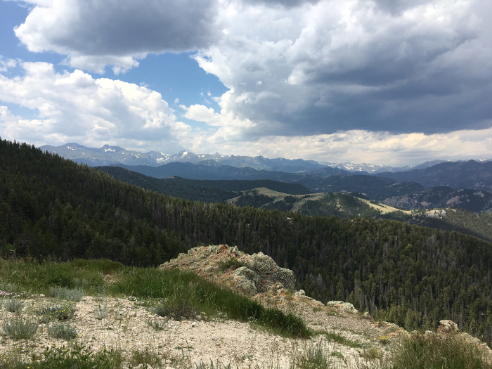 View from the pass on the Chief Joseph Byway, A few minutes after we took this, the wind picked up and almost blew us off the mountain.