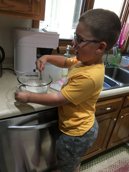 Friday morning we made pancakes for breakfast, and I helped. We also went out to see the farm in the morning, until Daddy needed to drive the trucks for Bob.