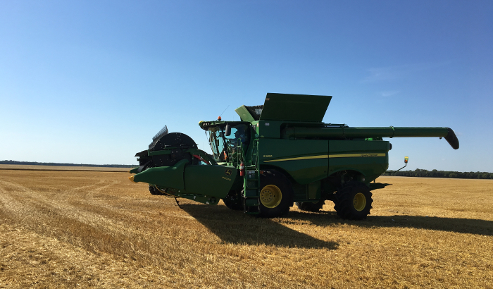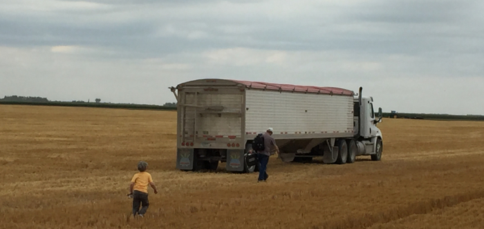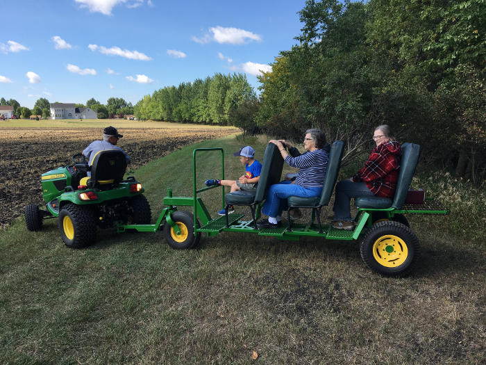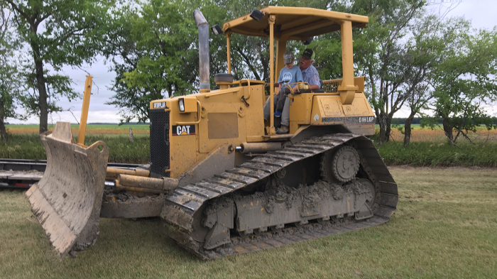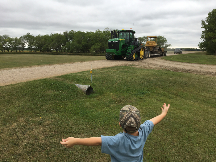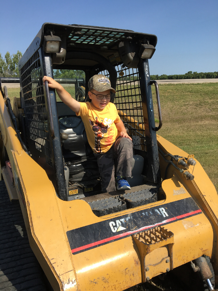 Saturday was a little gray and drizzly, so we didn't get to do any combining or truck driving. But I did get to ride on a bulldozer! And on Bob's trailer he tows with the lawnmower.