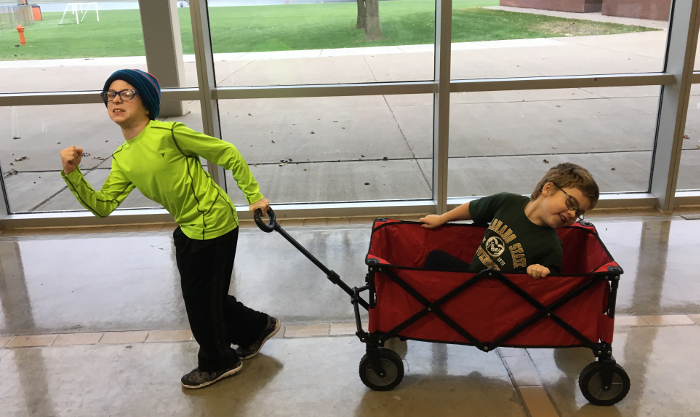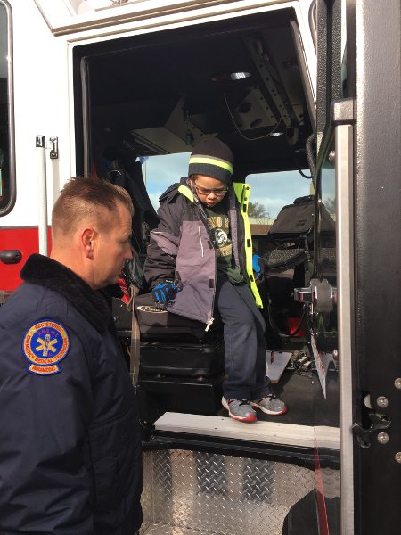 Saturday I had gymnastics in the morning, then we went to an event at the high school called Flippin' for Books - they had pancakes and books there. I played with Sawyer and Alex, saw several friends from school, and got a free book abut picking apples. The fire department, police, and ambulance service were also there.