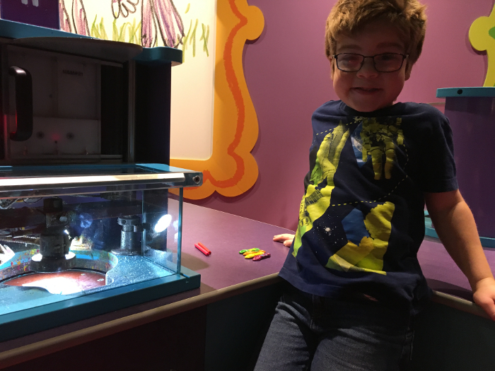 After the festival, Daddy and I rode the light rail with Josh and Freya so we would be out of the way while Mommy and Kara packed cookie boxes for the Tiny Spoons show on Sunday. We rode a bus, then the train, to the Mall. We went to the Crayola Experience, had some lunch, and played on a little truck for a while. Then we went back to the house for supper and we watched Rudolph the Red-nosed Reindeer.