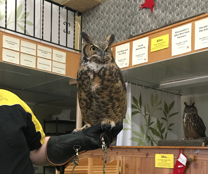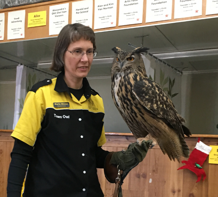 At the Owl Center, with Uhu, the Eurasian Eagle Owl.