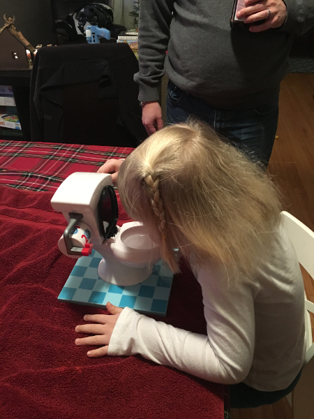 This week I was just waiting for Christmas. I did normal stuff, like going to school. And I went out for Grandpa Kevin's birthday. And I helped with people picking up cookie boxes. And gave Sawyer his birthday present (then I was sick at his house after supper). No school on Friday so I hung out with Mom. Saturday we went shopping and to the Owl Center. And Sunday Freya was over being sick, so we went to her house to celebrate and open presents.