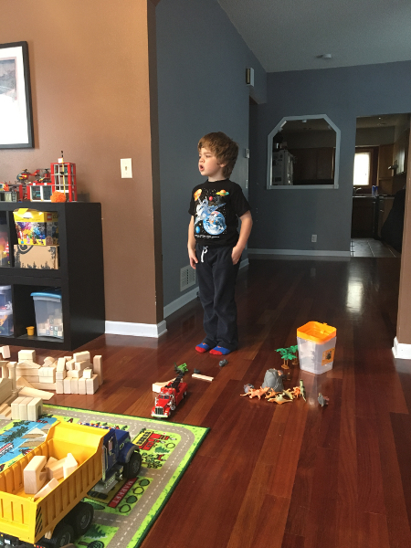 Winding down at home by pulling out a lot of toys.