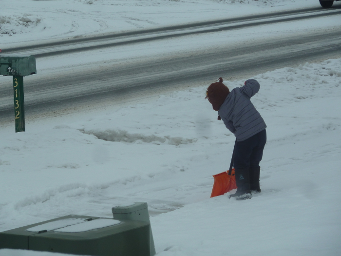 Helping shovel the new snow.