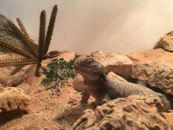 After the fun was over, we had to move a lot of stuff back to Mommy's lab and back to our house. While we were at the lab, Gizmo was out. Gizmo is a uromastyx, and he is usually really shy. But he seems to like me and Daddy because he doesn't hide when we stop to see him.