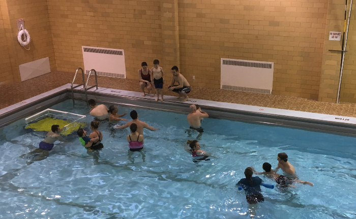 And swimming lessons started again. This time they are on campus, not at the Y. And the seating is way up high, not right down by the pool, as you might guess from the pictures.