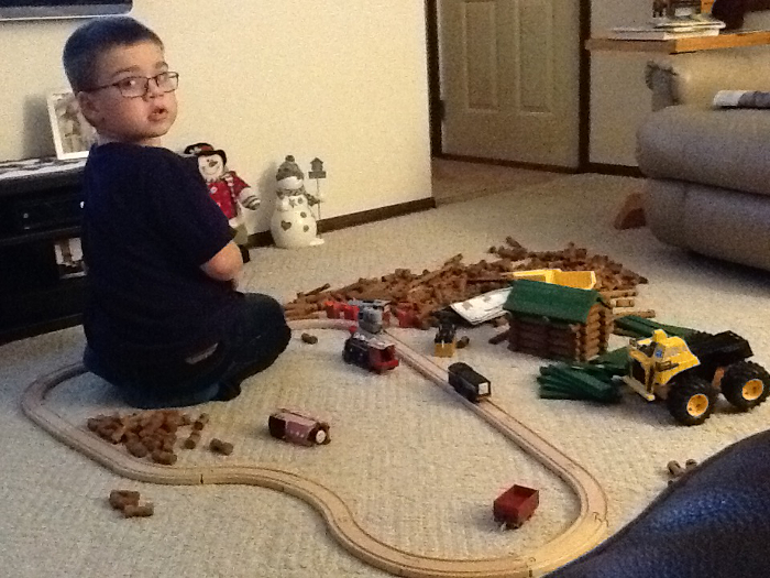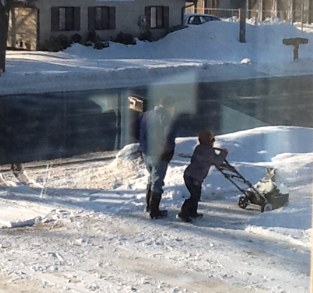 On the weekend I went to Grandpa Al and Grandma Wynne's house. The most fun thing I did was run Grandpa's electric snow thrower. And I also got two pair of new shoes and some new toy trains.