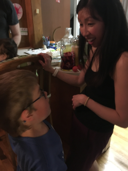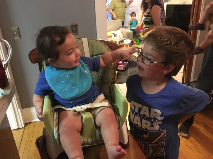 Saturday morning we went to the arcade and played lots of games. And we cashed in our points for prizes - me and Daddy got some Nerf dart guns. After the arcade we had lunch, rested for a while, and then went to Theo's first birthday party.