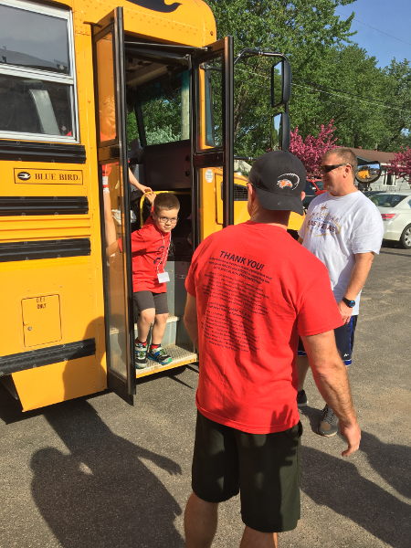 Arriving with the other athletes.