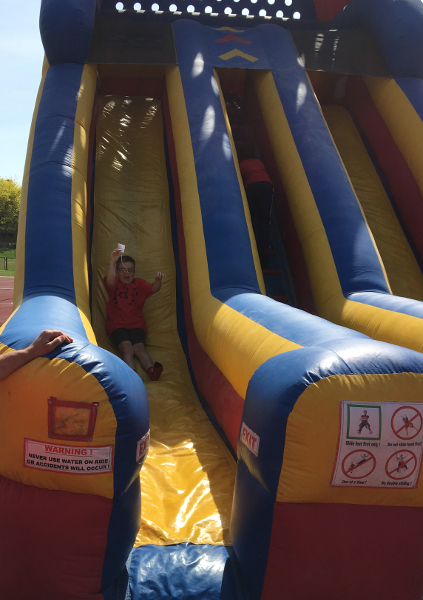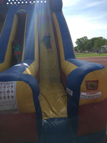 Relaxing on the bouncy slide before my races.