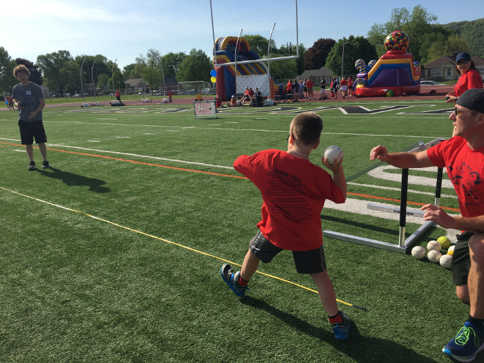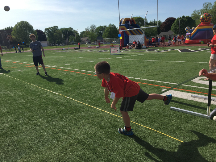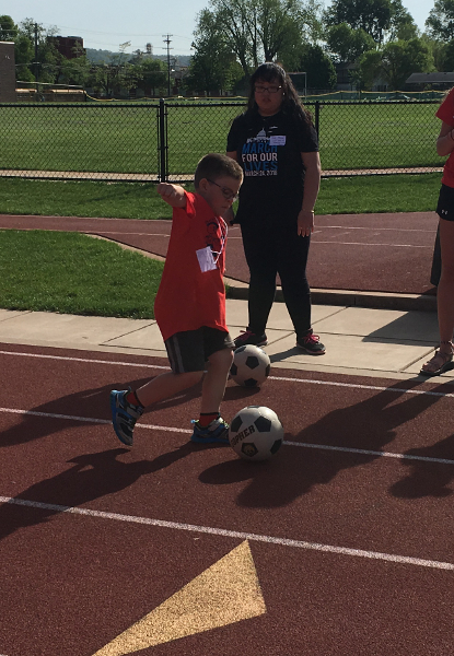 Lining up for the soccer kick with Abby and Logan.