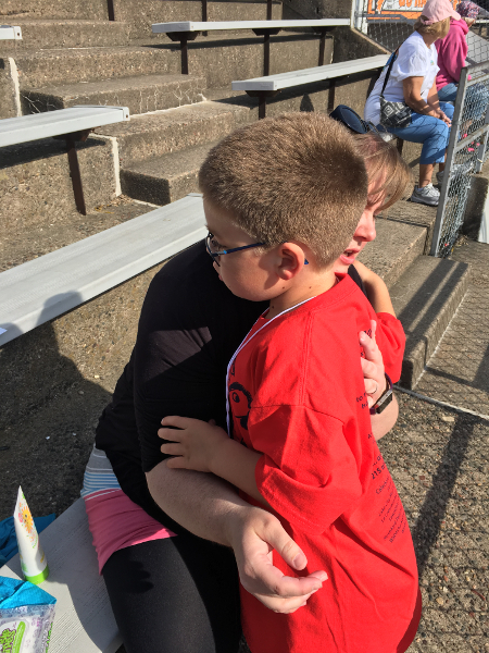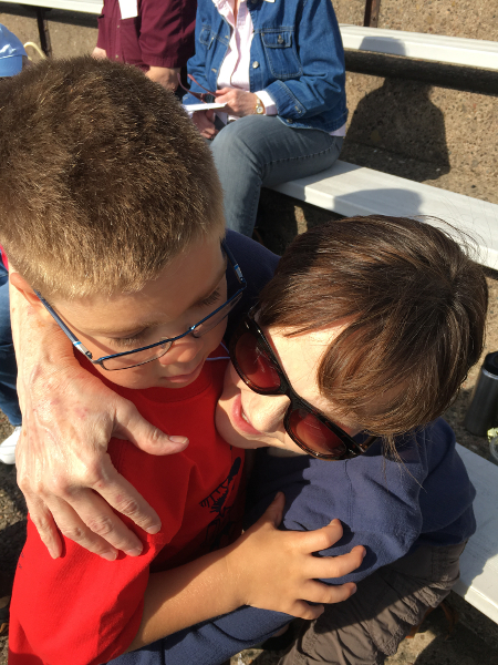 Diane getting a hug from Herky.