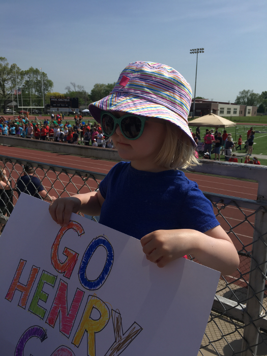 Freya getting ready to cheer at my race.