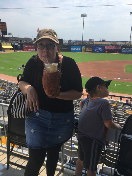 Mommy drinking a Bill Murray and hiding in the shade until the game starts.