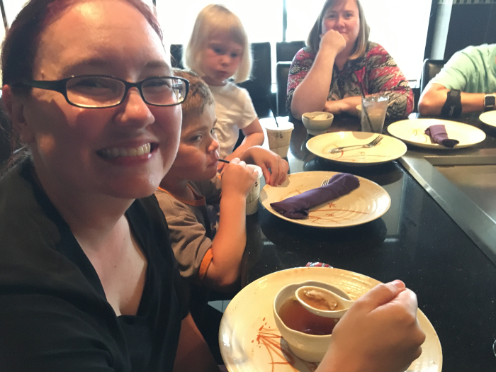 After the game we went out for supper with Freya, Kara, and Josh at the place where the guy makes the volcano out of an onion.