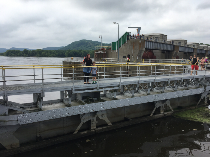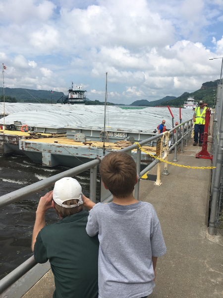 Saturday morning we went to an open house at Lock and Dam 6. Normally we can't even get close to the buildings at the locks, but this time the gates and all the doors were open. We saw some Coast Guard boats and we got to wander all over the lock and the dam. It was really cool. And then we got lucky and a barge came in while we were there.
