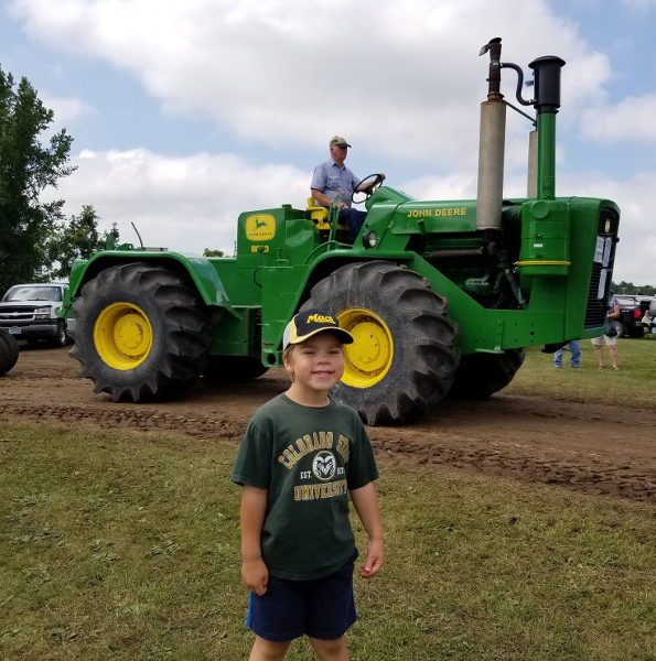 On Saturday I went to a machinery show with Grandpa Al, Uncle David, and Uncle John. We saw a lot of tractors, and some cool trains - it was lots of fun!