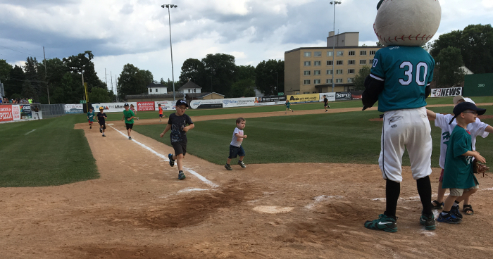 Sunday we went to a baseball game. We had a lot of fun and the Honkers won! I got to run the bases after the game - which was awesome.