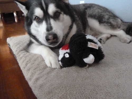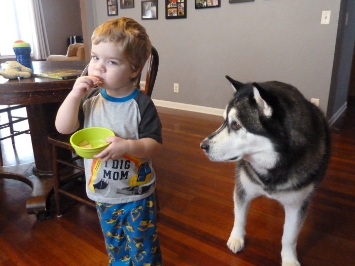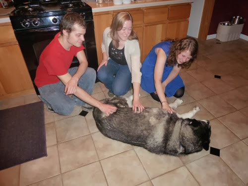 Duke made us laugh with all the crazy things he would eat if opportunity presented itself: a pizza cooling in the window; sticks of butter; a loaf of challah bread; a package of English muffins; slices of bread left on the counter for even a moment; a bag of lemon drops; and even a burrito buried in two feet of snow on the side of the road that he somehow smelled and dug out despite the temperature being below zero. How he would beg for food any time someone was eating. How he would lie flat on the floor like a furry crocodile when we were in the kitchen, waiting for a morsel to hit the ground. How much he loved ice cream. Have you ever seen a dog get brain freeze?