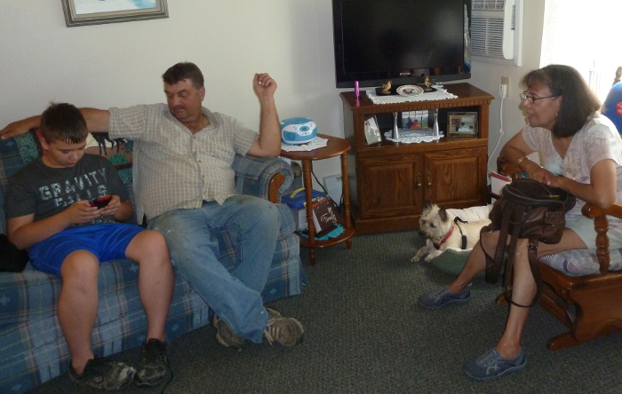 Monday morning I left the farm with Grandma and Jenn, but Daddy stayed to help Bob finish the disking. Mommy had shows to do, so I stayed with Grandma and Grandpa - who had lots of visitors while I was there. Todd and LuzMaria came with CJ, their little dog. And David came to stay for a few days. And of course Jennifer was there, and Rhonda, Stevannah, and Clint came to visit as well. I missed seeing Gunnar, Yulia, and Vincent because I had to go watch Bex and Lucy while Freya, Kara, and Josh were on a trip.