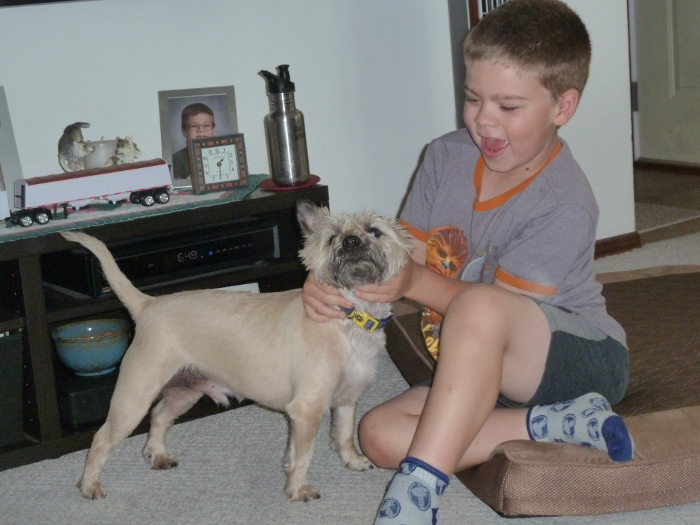 Playing with CJ, Todd and LuzMaria's puppy.