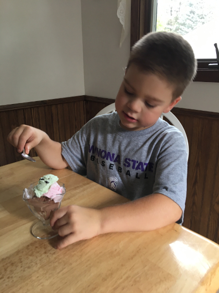 Having some ice cream.
