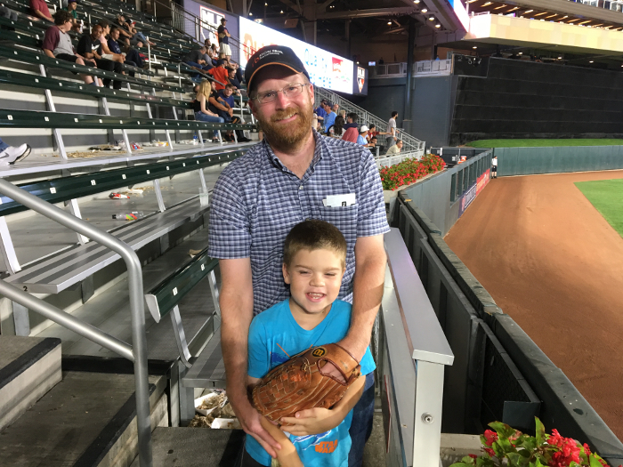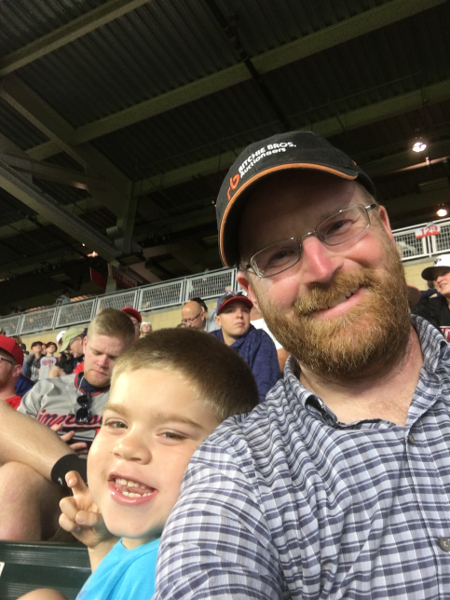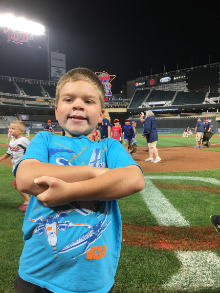 Monday we started out playing Mille Bornes, a car racing card game. Then we went to the Zoo and watched a movie about pandas - it was my first IMAX and first 3D movie. We also went to the bird show. After all that we went back to the house for a bit before Daddy and I took the train downtown to the baseball stadium to see a game. It was my first major league game - too bad the Twins lost. And then I got to run the bases after the game! It was awesome. Daddy was jealous - they wouldn't let any of the adults on the grass. We didn't get back to the house until 11:00 PM.