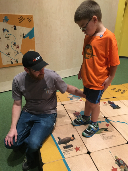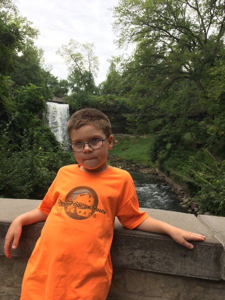 Tuesday we went to the history center, which is a really cool building so big it has an airplane inside it! And a grain elevator! And a mine! I had a lot of fun with the exhibits for kids - not so much looking at those for adults. When we were done with that, we went to see Minnehaha Falls, and Daddy and I walked in the woods for a while.