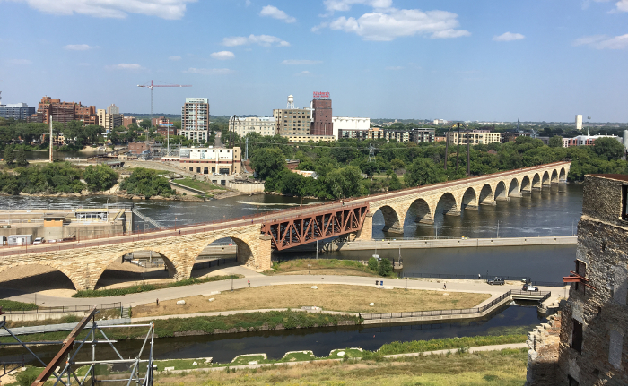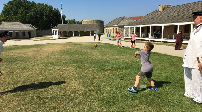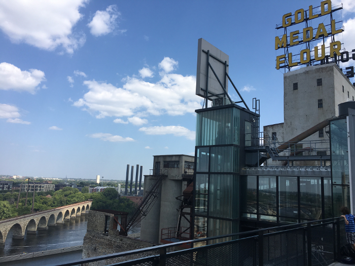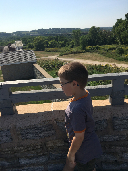 Wednesday morning we started out by going to Lock and Dam No.1. Then we went to Fort Snelling, or "Old HQ" as I called it. We played baseball and watched some soldiers fire guns and a cannon. We stopped at the house for a little lunch, then went downtown to the Mill City Museum, which is in an old flour mill. We had a fun elevator ride, saw where all the grain came in, and looked at the city from way up high. When we finished at the museum we went to a dessert restaurant that Mommy's friend Christina has. We had some really good ice cream and all of the spoons and forks were gold!