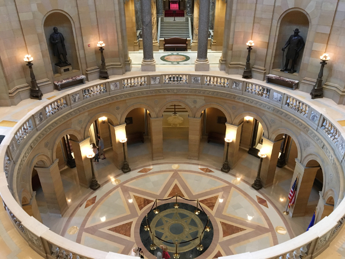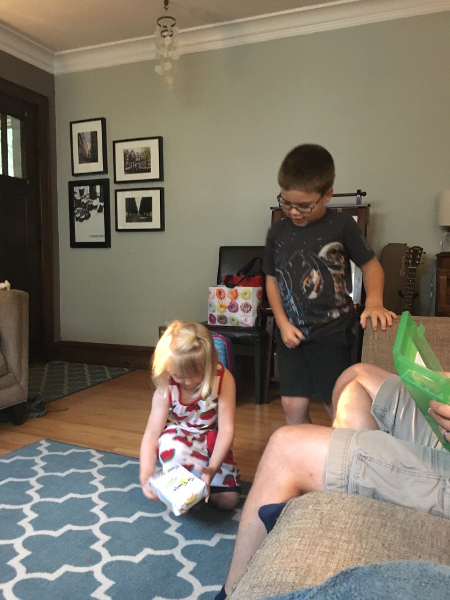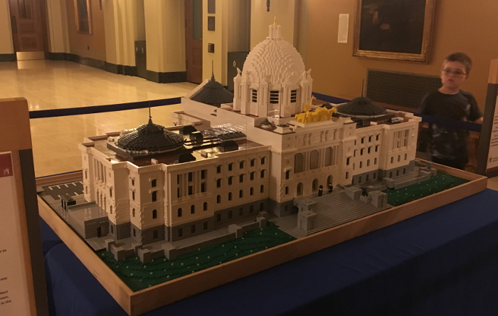 Thursday we went to the James J. Hill House, which was once the largest house in the state! There were a lot of rooms - it was a really big place. I liked the bolier room best - it had two big coal furnaces that looked like steam engines. Then we went to the capitol building - it was so big. But Daddy managed to find a cool LEGO model while he was wondering around. Freya, Josh, and Kara came home that day, and Freya opened some of her birthday presents.