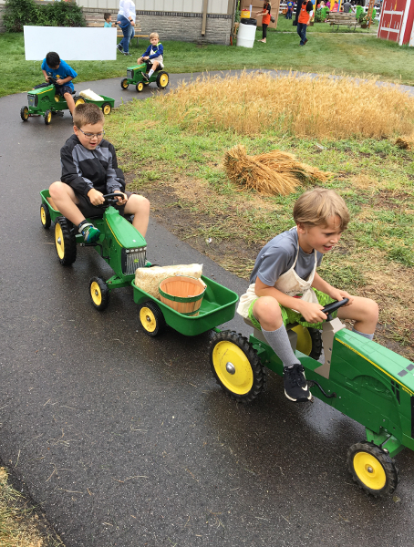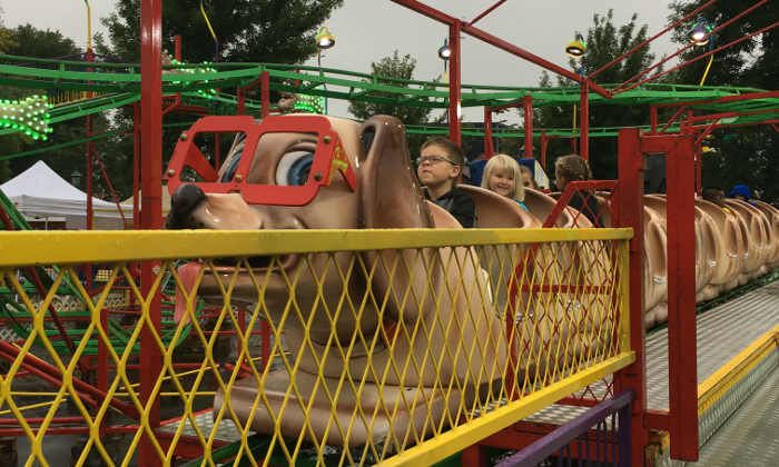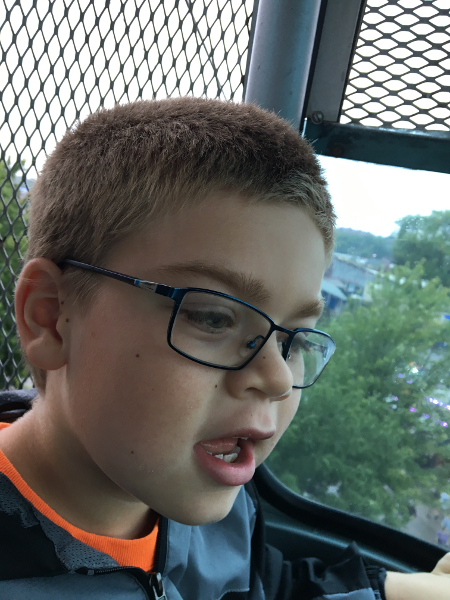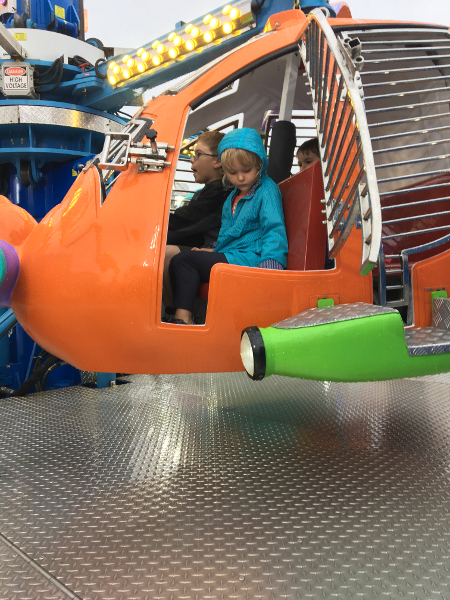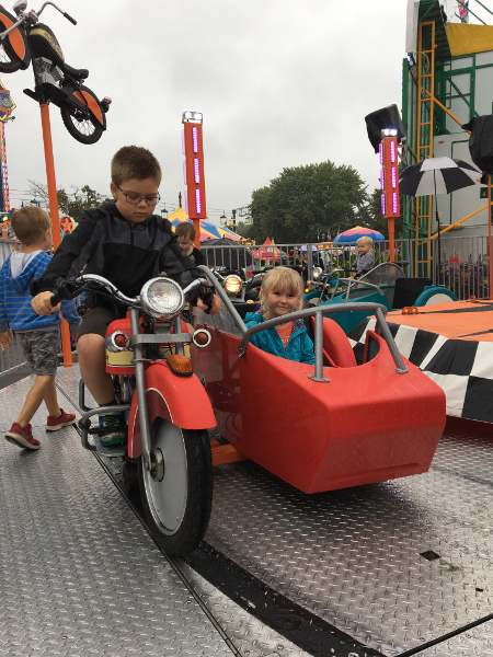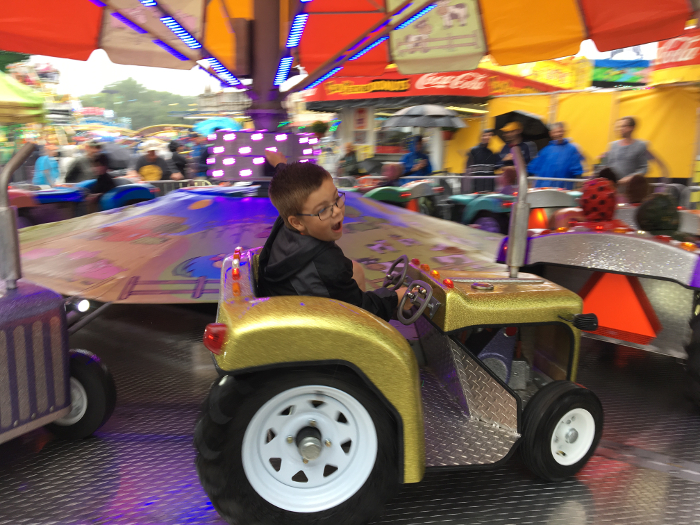 Friday morning we went to the State Fair! It was rainy the whole day, but at least it wasn't hot and no one got sunburned! We had waffles and pickles and ice cream and pizza and mini donuts and we went on rides and looked at tractors and we got soaked during a downpour that happened when we were about as far away from a building as we could get.