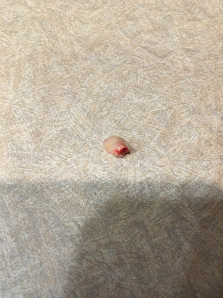 I had school, and I chopped some snow, and Daddy pulled out one of my teeth - the little one that's been loose but hanging on for a couple of months now. I didn't like it, but it was over fast and everything was okay.