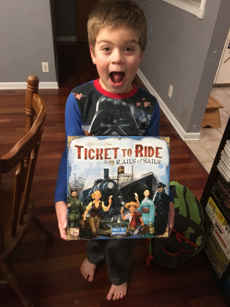 We went home and read books and played video games. We also went to the library and checked out a big pile of books. Before supper, Daddy and I played Ticket to Ride. Mommy made us spaghetti and we all watched Willow.