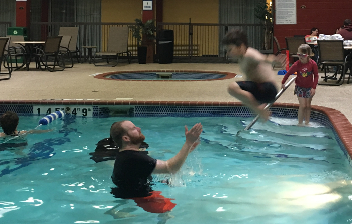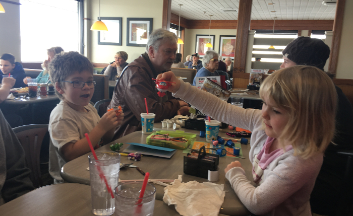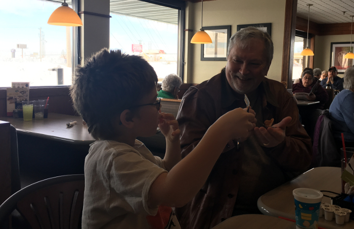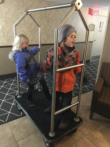 Mom and Dad picked me up Saturday afternoon and we went west. Mommy was helping her cousin Liza with a retirement party, and we came along for the ride and to do some visiting with Great-grandma Joan, Great-grandpa Eldon, Aunt Cindy, Uncle Ross, Liza, Sydney, and Jacob. We also stayed in a hotel with Freya and Auntie Kara. It was a little crazy. And loud.