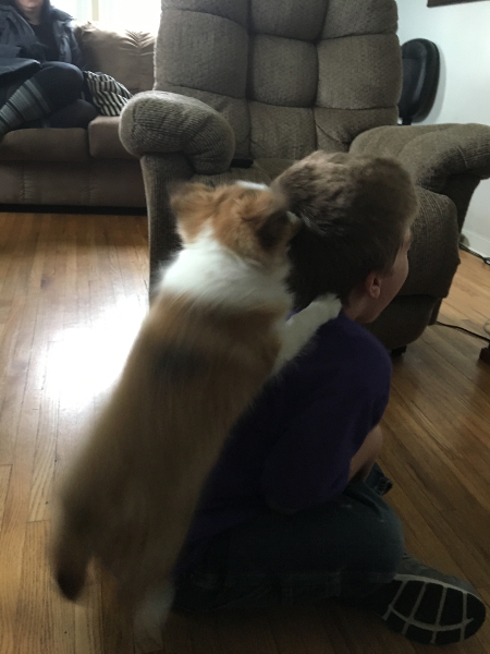 Angel really liked sniffing my head. She even jumped on my back!