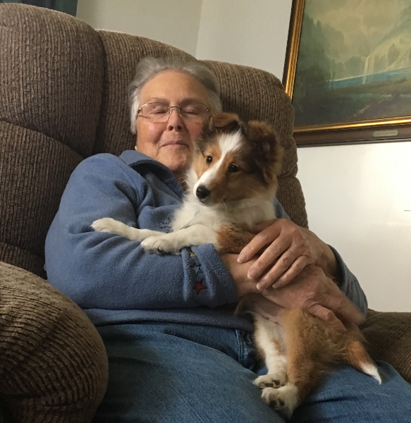 Playing with Angel, Diane's new puppy.